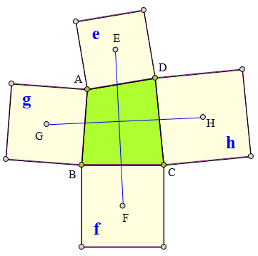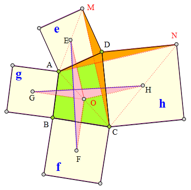 四边形ABCD,以其各边向外作正方形e、g、f、h,连接对边正方形中心EF、GH,求证:EF丄GH,EF=GH