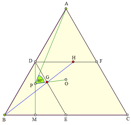D、E、F为正△ABC各边中点,O为正△ABC中心,M为BE中点,P为DM上一点,∠APO=60°,PO交DE于G,BG交DE于H,求证:DG=FH