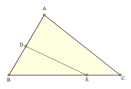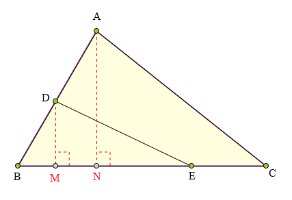 作DM丄BE于M,AN丄BC于N,则:DM=BD·sin∠B, AN=AB·sin∠B,S△ABC=½(AB·sin∠B·BC)...①S△DBE=½(BD·sin∠B·BE)...②由①②得:S△ABC/S△BDE=(AB·BC)/(BD·BE)