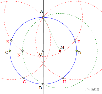 作⊙O两相互垂直的直径AB、CD作OD中点M以M为圆心,MA为半径画弧交CD于N以A为圆心,AN为半径画弧交⊙O于E、F分别以点E、F为圆心,以AN为半径画弧交⊙O于G、H则多边形AEGHF为正五边形