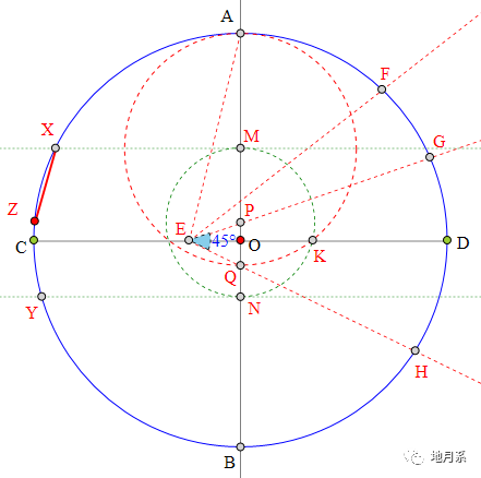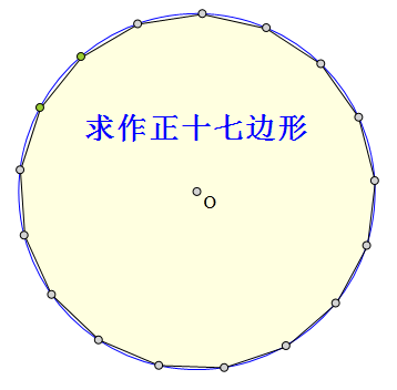 作⊙O两相互垂直的直径AB、CD在OC上作E点使OE=¼OC作∠AED的平分线EF交⊙O于F作∠FED的平分线EP交AO于P作∠PEQ=45°,交AB于Q以AQ为直径作圆交OD于K以P为圆心,PK为半径作圆交AB于M、N分别过M、N作MN的垂线,交⊙O于X、Y作弧XY的中点Z,以XZ为半径将⊙O17等分