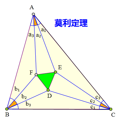9.根据∠PAE将∠ACB三等分,则易作出莫利定理原图。