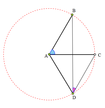 以A为圆心,AB为半径作圆,则C、D都在圆上,∵圆心角=2倍圆周角∴∠BDC=30°