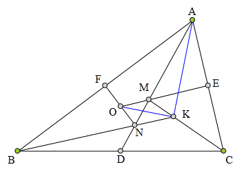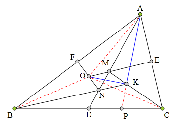 如图,延长AK交BC于P,则PK平分∠BKC。